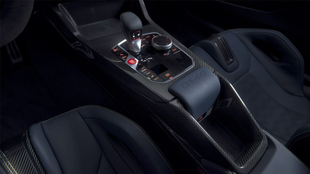 The VR46 branding has been carried over into the cockpit as well. The M Carbon bucket seats come with Merino leather upholstery in a Black/Night Blue colour combination, with Sao Paulo Yellow contrasting elements. The centre console will have the limited edition numbering.