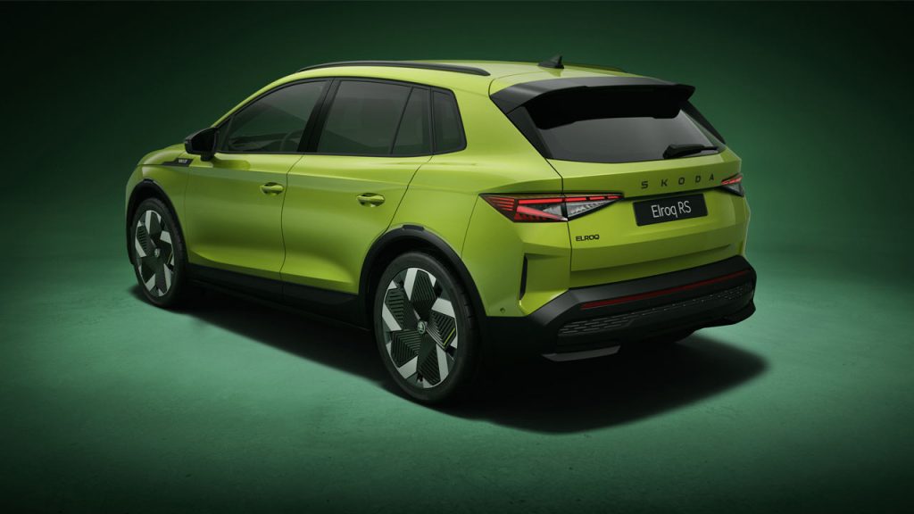 As for visual upgrades, the Elroq vRS attempts to look like it packs at least a twin-turbo V6 under the hood. The front fascia of this supposedly sporty variant is called Tech-Deck Face. The faux grille is composed of vertical “eyelashes”, which comes as standard, as do the LED Matrix headlights. The bumper design looks rather busy, but maybe that’s just me. On the side, notice the black window surrounds, and also those 21-inch aerodynamically optimized alloy wheels are exclusive to the Elroq vRS. The rear-end doesn’t look all that different, except for dark badges and dark bumper details. Tow bar preparation is included as standard, while an electric release towbar is an optional extra.