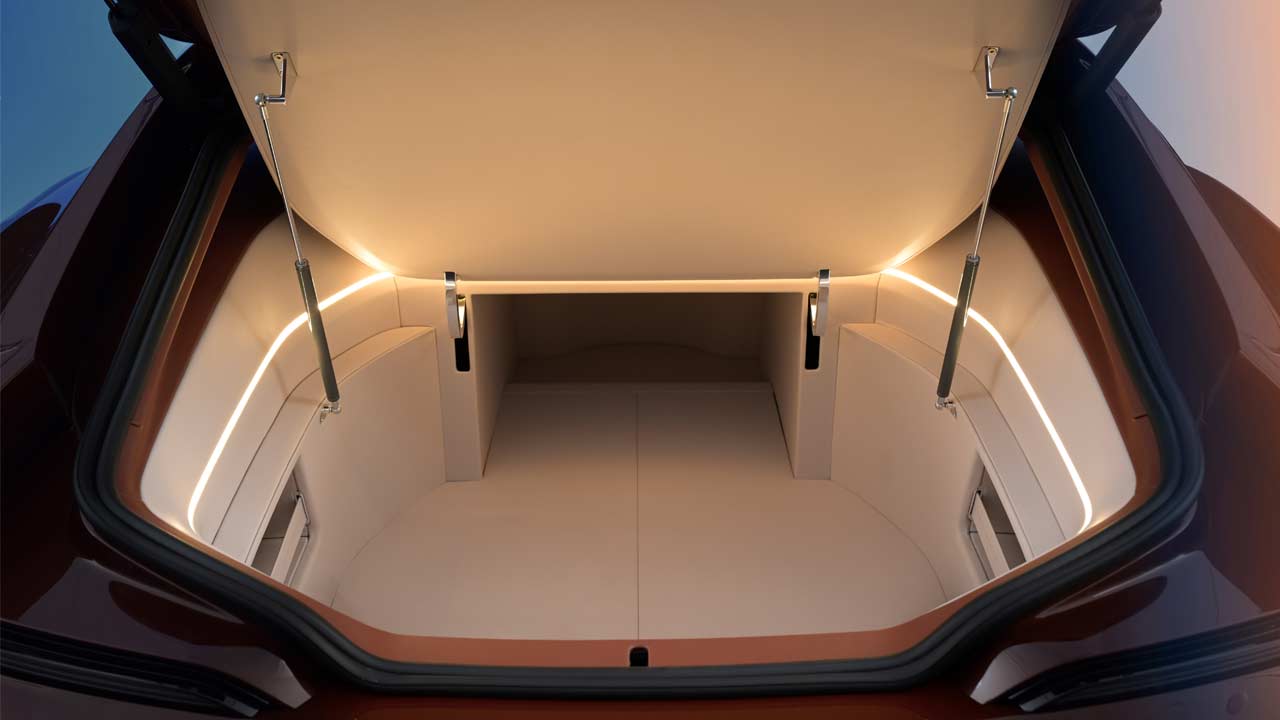 Besides the obvious shooting brake body, the Speedtop sports a similar design language as the Skytop. The central spline looks even better in the Speedtop, as it runs from the bonnet over the roof and towards the rear spoiler. Also, notice the gradient on the roof, which transitions from Floating Sunstone Maroon to Floating Sundown Silver. The concept rides on two-tone, 14-spoke wheels.