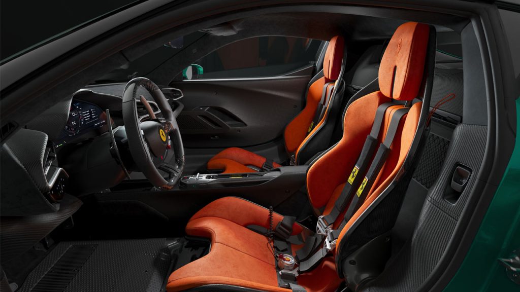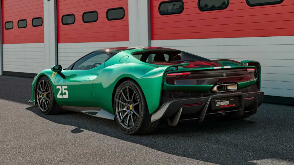 Customers can opt for the new Verde Nürburgring exterior colour developed specifically for the 296 Speciale. Yes, the livery can also be ordered with single or double stripes, and the number can also be the customer’s choice from 00 to 99.