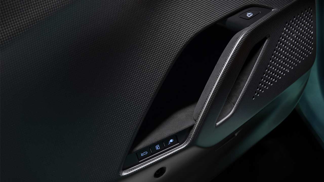 In the cockpit, you’ll find extensive use of carbon fibre and Alcantara.