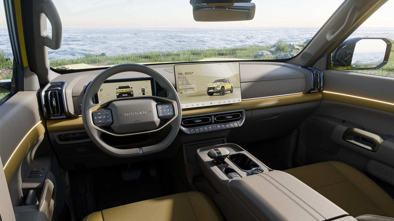 This upcoming electrified Frontier Pro sports a fresh design (designed at Nissan’s Shanghai studio) that looks significantly different from the current model. According to Nissan, the truck was styled around the concept of “Rugged Tech” with a modern exterior design that complements a spacious and refined interior. But whatever it is, the generous lighting on the front fascia reminds us of Hyundai-Kia practices. While the front lighting may pass off as a generic full-width light bar, those three lights in the middle, according to Nissan, were inspired by the distinctive three-slot opening in the hood of the 1980s Nissan D21 hardbody pickup. The wrap-around lights at the rear make an attempt to mimic the front lights. The side profile looks clean and minimalistic. Nissan says that all variants ride on standard 18-inch alloy wheels with 265/65 R18 tires.