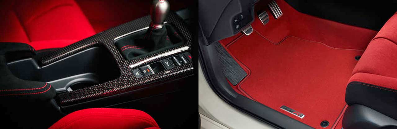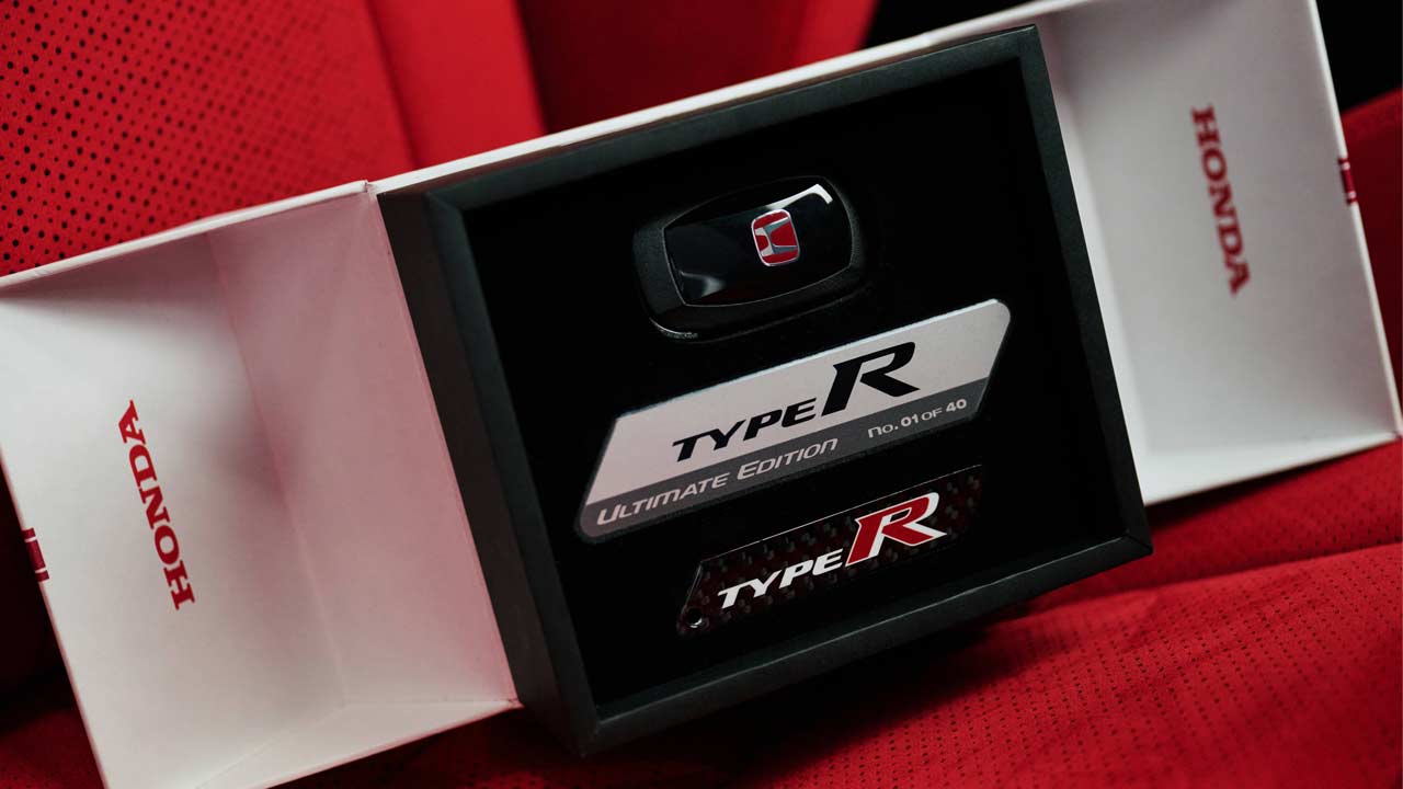 Inside, the door sill and centre console get a carbon fibre applique. The red seat upholstery and red flooring are stock; no changes here. And of course, you get a Type R light projection. Each owner gets an Ultimate Edition gift box containing a numbered emblem, Carbon key ring and Type R keys.