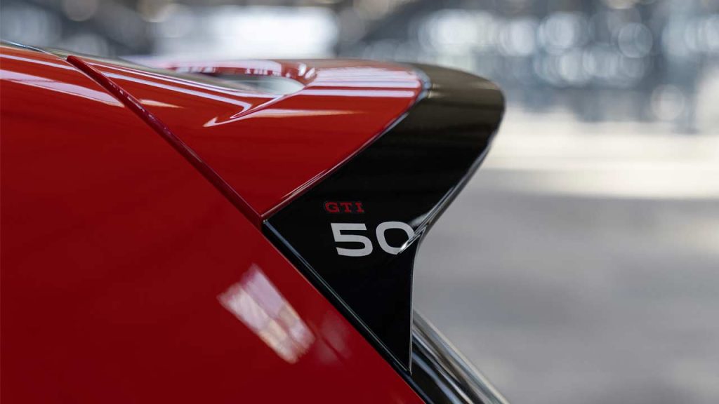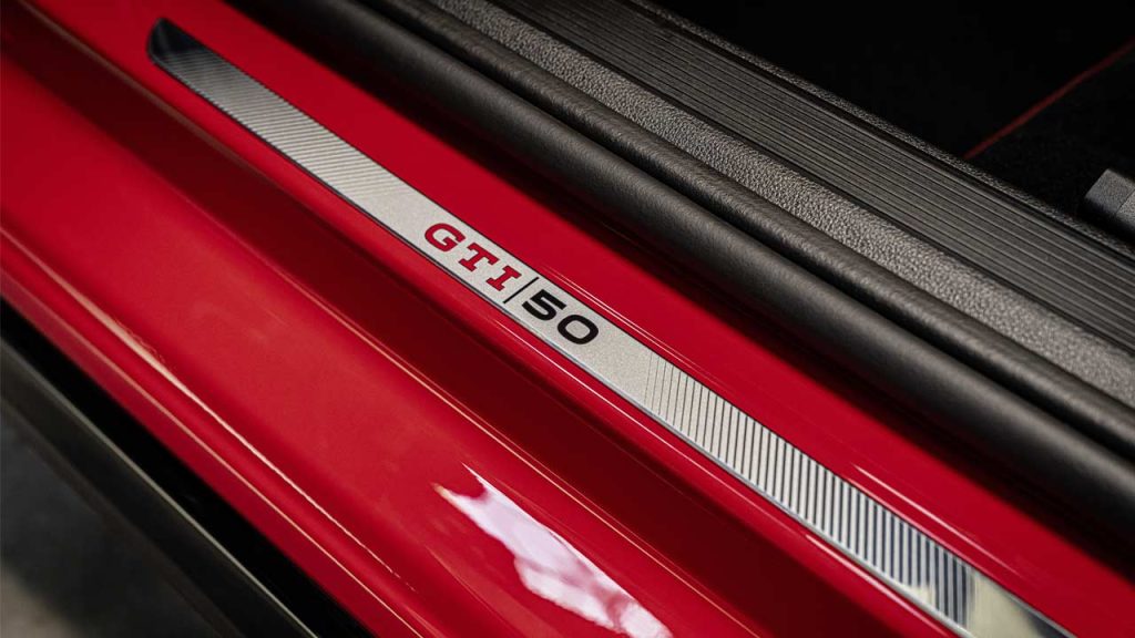 The 2.0L 4-cylinder TSI in this application pumps out 239 kW (325 metric hp) and 420 Nm (310 lb-ft). Which means, the Edition 50 is not only more powerful than the GTI Clubsport, but also gets 5 more horses than the Golf R. However, the Golf R 333 still remains at the top when it comes to the number of horses.