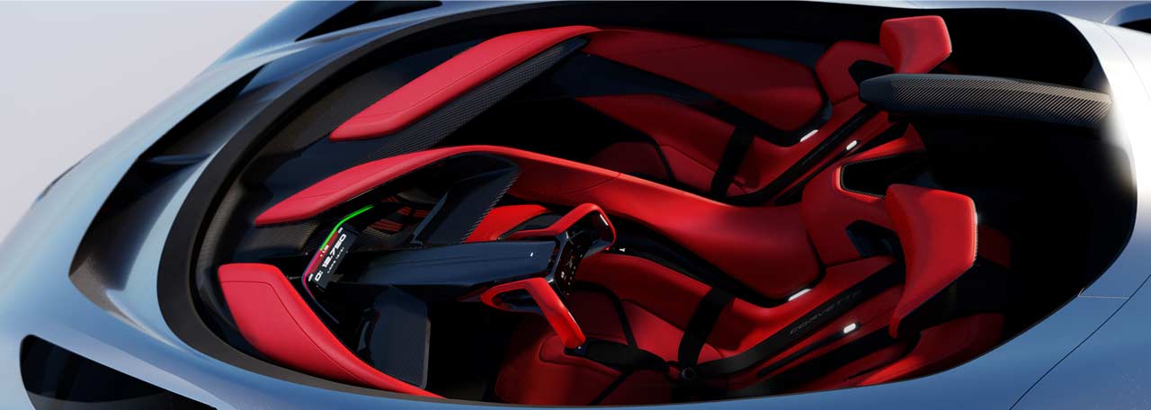 One of the key highlights of this concept is a removable single-piece, front-hinged canopy. While the exterior design doesn’t really remind us of the Corvette, the driver-focused cockpit is somewhat similar to that of the Corvette.