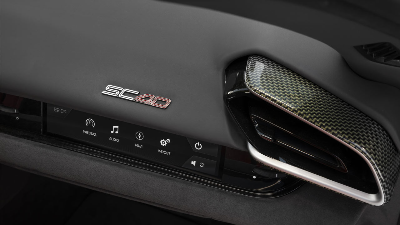 So, is the SC40 just a rebodied 296 GTB? Well, yes, as is the case with most such one-offs. The name and the design are apparently inspired by the F40, but personally, I think some of the design elements are a bit overdone, such as those black headlight housing extensions connecting with the lower air intakes. But otherwise, the design looks pretty good, and you can see the design connection between this and the F40. Those 20-inch wheels are exclusive to this one-off. The brakes measure the same (398 mm front and 360 mm rear).