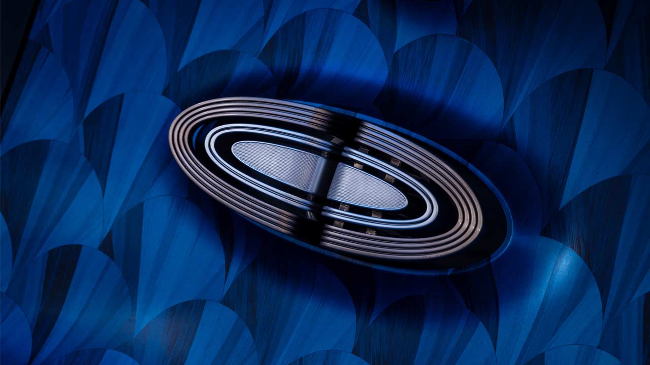 It’s a strange world on the inside; it’s a mix of Art Deco and retro-analogue elements. The 4-spoke steering wheel, for example, is reminiscent of that of a 19th-century boat, while the dashboard is a floating glass case called “Zeppelin”. At the centre of this case is a band containing four clocks, one of which is shaped like the brand logo—which apparently acts as an AI companion. As the door is opened, the analogue instrument cluster comes to life with its own animation inspired by high-end chronographs.