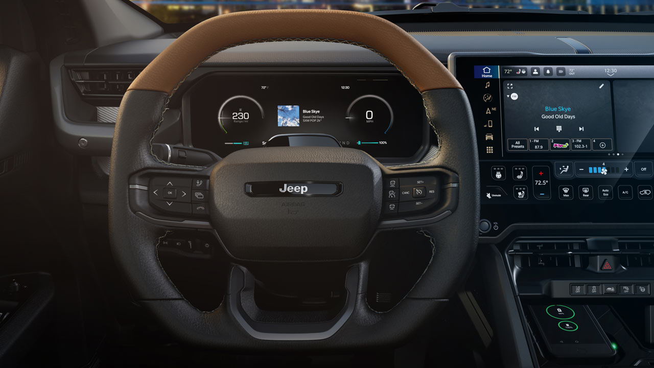 Key highlights inside include a 12.3-inch digital cluster, a 14.5-inch central touchscreen (the largest singular digital screen in a Jeep), wireless Apple CarPlay & Android Auto compatibility, Amazon Alexa integration, and integrated digital HVAC controls. Off-road enthusiasts will appreciate the new Jeep-exclusive Trails Offroad app, which offers a comprehensive guide to trails across the U.S. and Canada, now with pitch and roll mapping. Rear cargo space measures 1,866 litres (65.9 cu.ft.) (with the second row folded), while there’s also an 85 litre (3 cu.ft.) frunk if you need more.