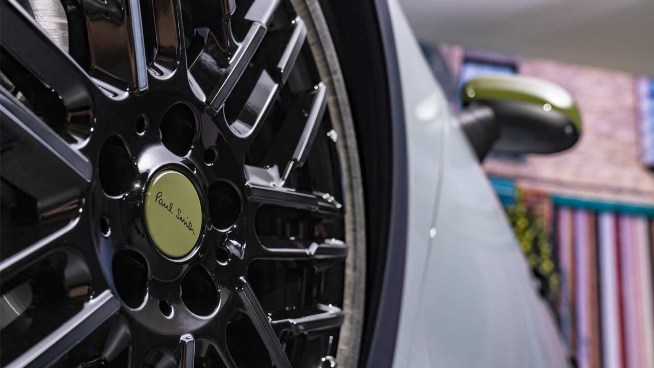 Of course, the black doesn’t get the green roof. Instead, it gets stripes in Jet Black in varying thickness, both matte and glossy. Other noticeable details include Paul Smith lettering on the hub caps and underneath the rear logo, and the Signature Stripe on the roof. The MINI logo at the front and rear has model-specific color compositions. All edition vehicles are equipped with 18-inch Night Flash Spoke black aluminium wheels with tinted clear coat in Dark Steel.