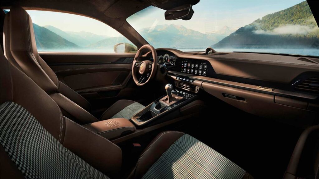 Nicknamed “Butzi”, F. A. Porsche designed the original Porsche 911, and therefore, it makes total sense to offer a special edition GT3 (touring) to commemorate his 90th birthday. The 911 GT3 90 F. A. Porsche has been created in close collaboration with Mark Porsche. The exterior is finished in F. A. Greenmetallic, a specially created paint for the anniversary model, inspired by the Oakgreenmetallic of Butzi’s own 911. Notice the galvanised gold-plated badge on the boot lid grille.