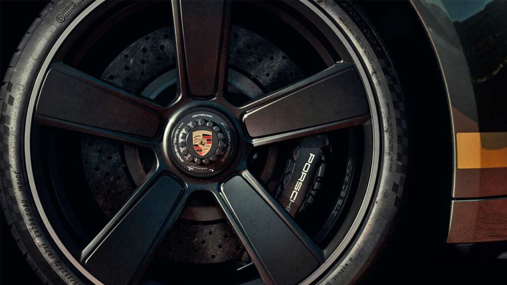 Another key exterior highlight of this special edition is the Sport Classic wheels. Inspired by the classic Fuchs rims, the wheels are painted satin-gloss black. The wheel hub covers feature the historic 1963 crest. There are no mechanical changes with regard to the powertrain or suspension setup. As mentioned, the 911 GT3 90 F A Porsche is based on a 911 GT3 Touring. Which means the 4.0L N/A flat-six offers the same 375 kW (510 metric hp) and 450 Nm (332 lb-ft).