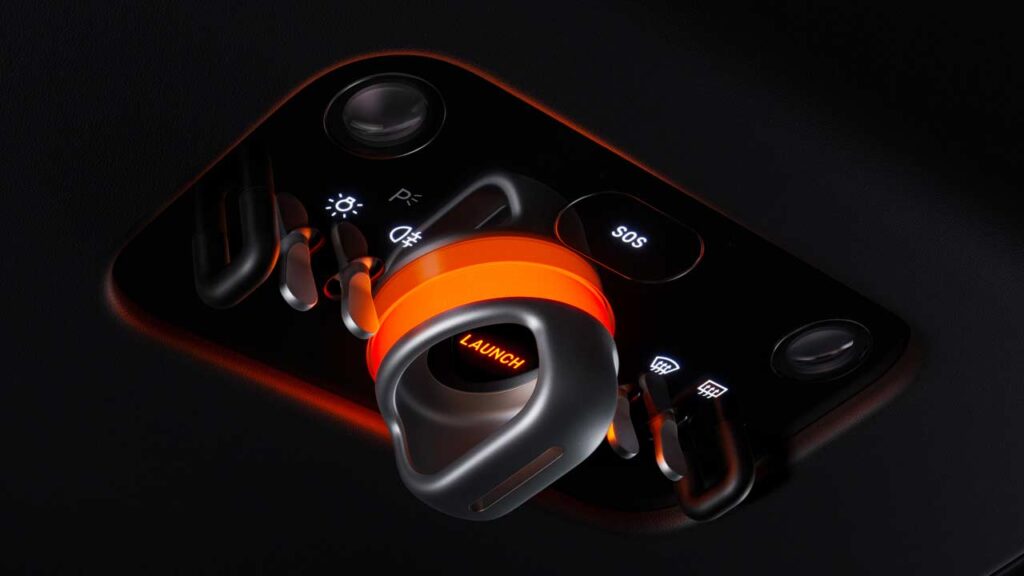 On the top right corner of the touchscreen, there’s a clock. While it may seem analogue, it is actually digital. It can even double as a compass when needed. The dials are analogue and the face is digital. The same philosophy applies to the instrument cluster. It may appear fully analogue, but in reality, those are overlapping OLED displays. BTW, the displays are supplied by Samsung with UX from Samsung’s Harman division. On the centre console, there’s a magnetic slot to place the key. The key, covered in Corning Gorilla Glass, has an E-Ink display. Once you place the key and push it, the yellow part dims out, and the same yellow appears on top of the shifter. Again, unnecessary stuff, but probably a great UX. The shifter is also covered in Corning Gorilla Glass.