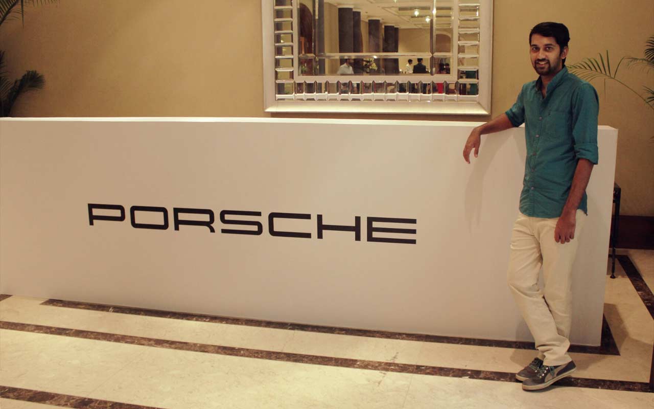 My friend Akash who is also a huge petrolhead, assists me sometimes. Although he’s standing in front of a Porsche counter in this picture, he has a thing for Maseratis.